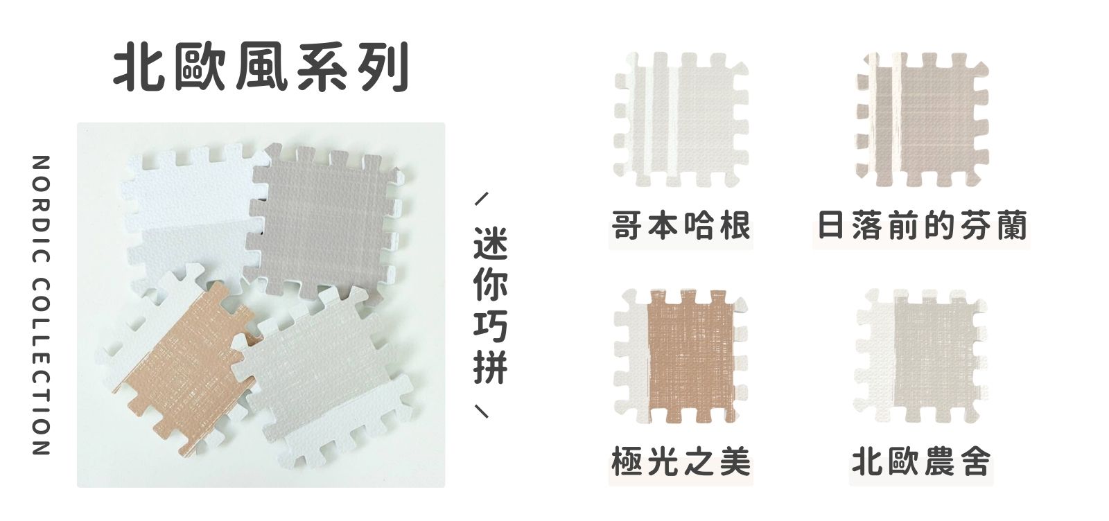 「北歐風系列」迷你巧拼,淺色調與簡約設計展現自然靜謐美感,帶來清新舒適的北歐氛圍。