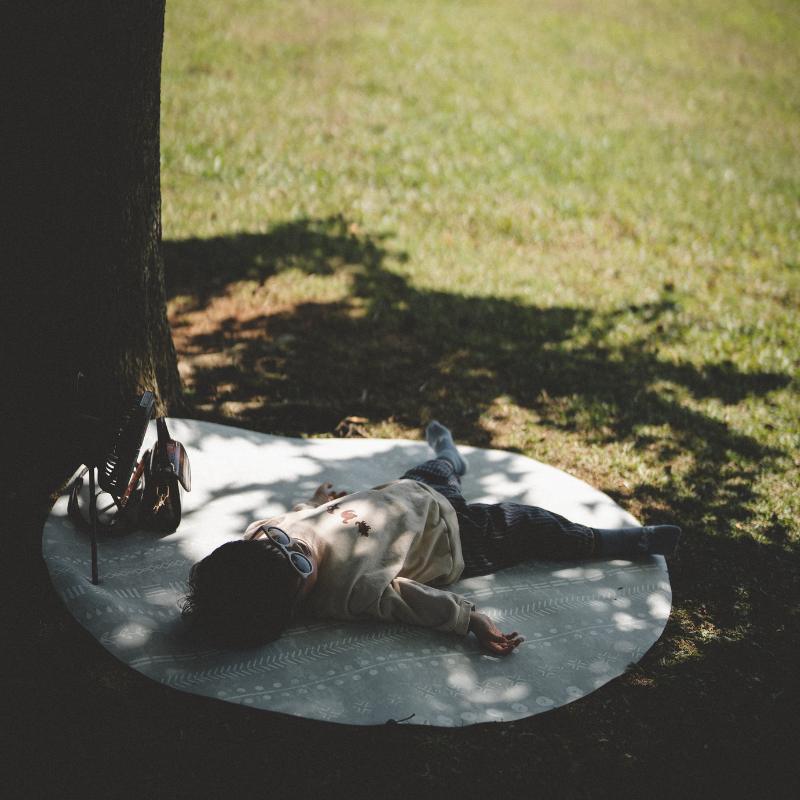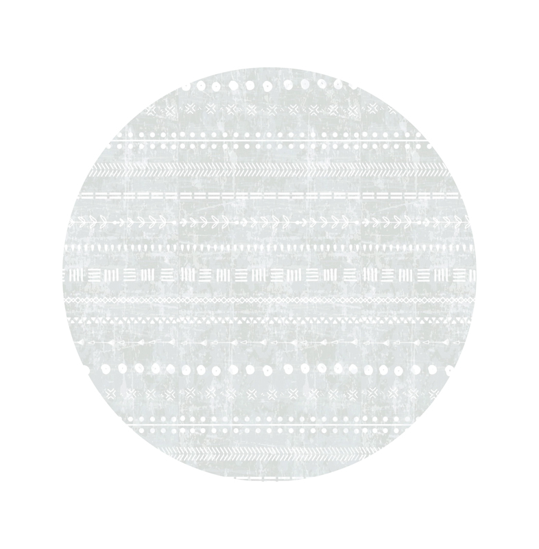 「秘境時光」圓形皮革地墊,設計靈感源自神秘而寧靜的自然景致,淺灰色的底色猶如晨霧中的森林,營造出寧靜與沉穩的氛圍。
