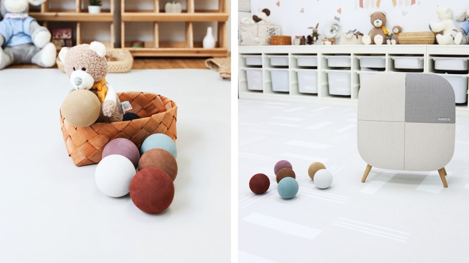 二、家庭運動區:巧拼地墊 × 玩具瑜珈球