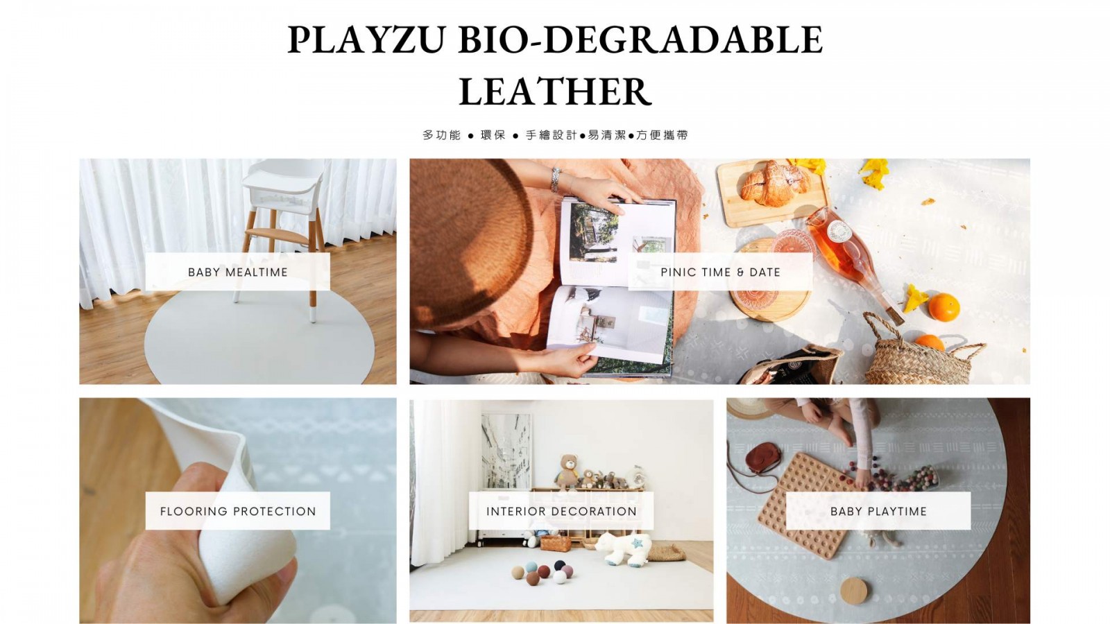 在防水抗污止滑墊的行業中,生物可降解材料屬於最具創新性的材質之一,而 PLAYZU 正以開創性的製造商和供應商身分,將其卓越的材料融入高級的嬰幼兒防潑墊的生產中,並秉持著環保原則;基本上,PLAYZU 的皮革防水抗污止滑墊具備了理想防潑墊的所有必備特點,不管是在功能性,還是自訂時尚設計方面都是,同時我們也將其精心設計成能夠在時間的推移中自然分解,將環境足跡降到最低。