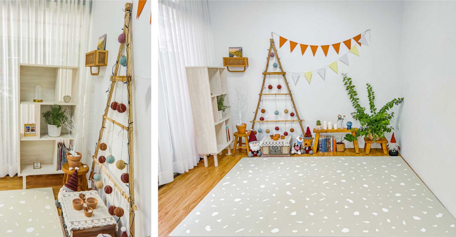 您可能還沒有整理好所有的裝飾品。 但不要低估小細節的力量,例如一兩個裝滿鮮花的花瓶、一些蠟燭和有趣的派對配飾(例如淘氣的雞尾酒餐巾、怪誕的盤子和帶圖案的紙吸管)。 這些東西都很容易拿到,但確實可以為派對增添氛圍。自己動手做聖誕樹,或者從附近的商店買一棵。將地板鋪上溫暖、簡約水磨石花紋設計的巧拼地墊,讓您的客人擁有溫暖舒適的感受。 好的地板帶來煥然一新的裝修,提供一個聚會過夜的好地方!