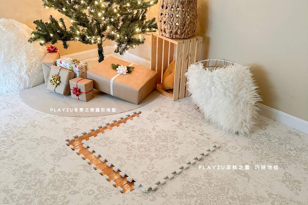 在這次聖誕主題佈置,我使用了優雅的波斯花巧拼地墊的深秋之雪「Falling Snow」,這款地墊以淺灰色圖案搭配白色背景,呈現出冬日中飄落的雪花圖像!想像一下,當您坐在柔軟的遊戲墊上,與孩子們一同歡樂地度過時光,打開禮物,這將是最美好的聖誕回憶!