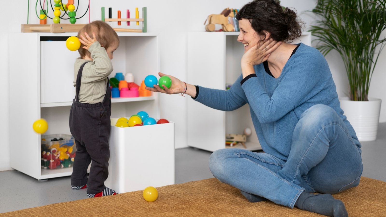 • 滾球、傳球遊戲 → 增進親子互動與手眼協調