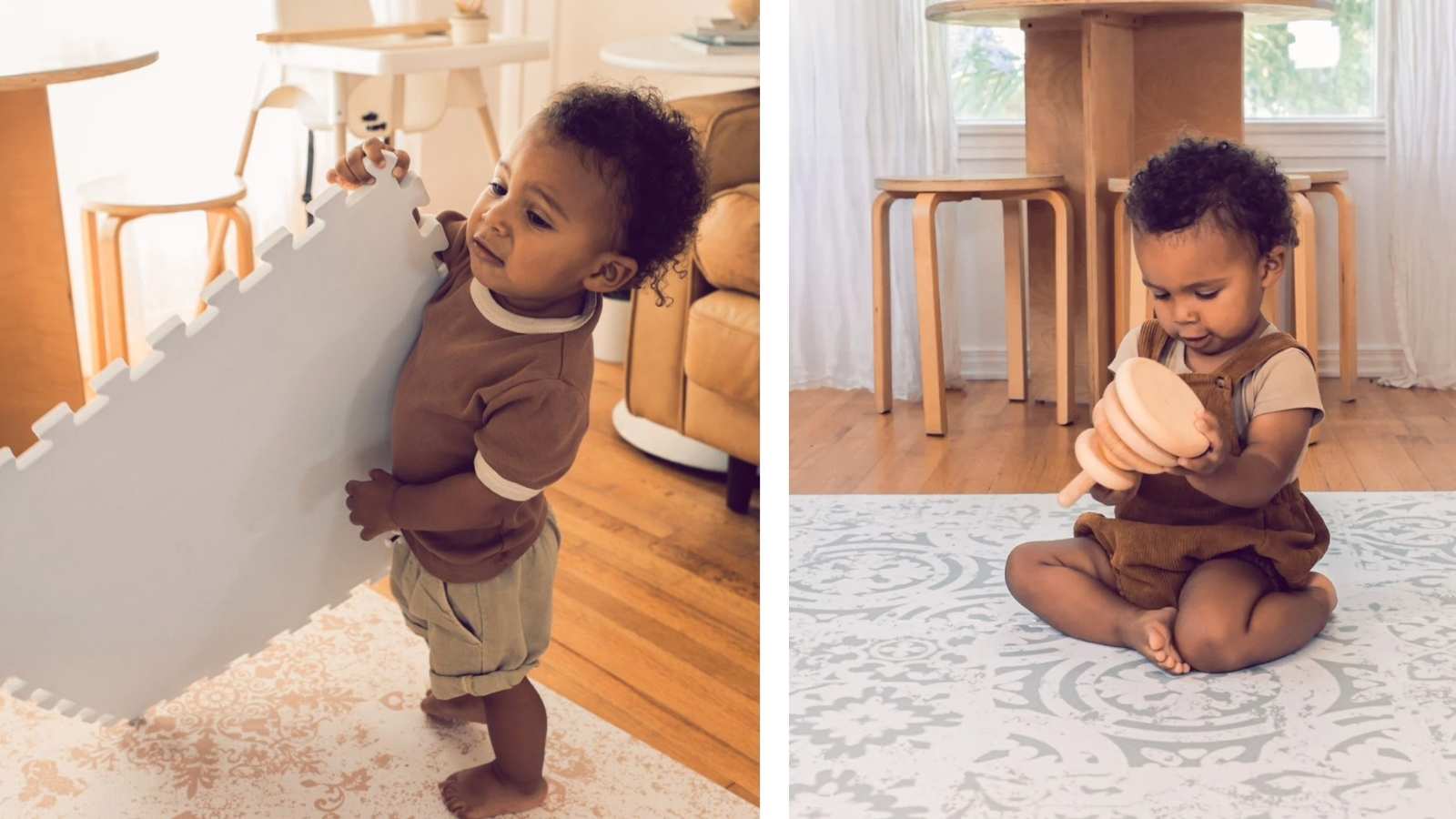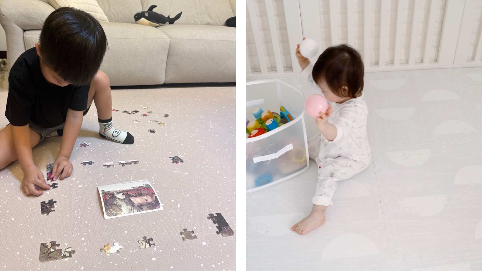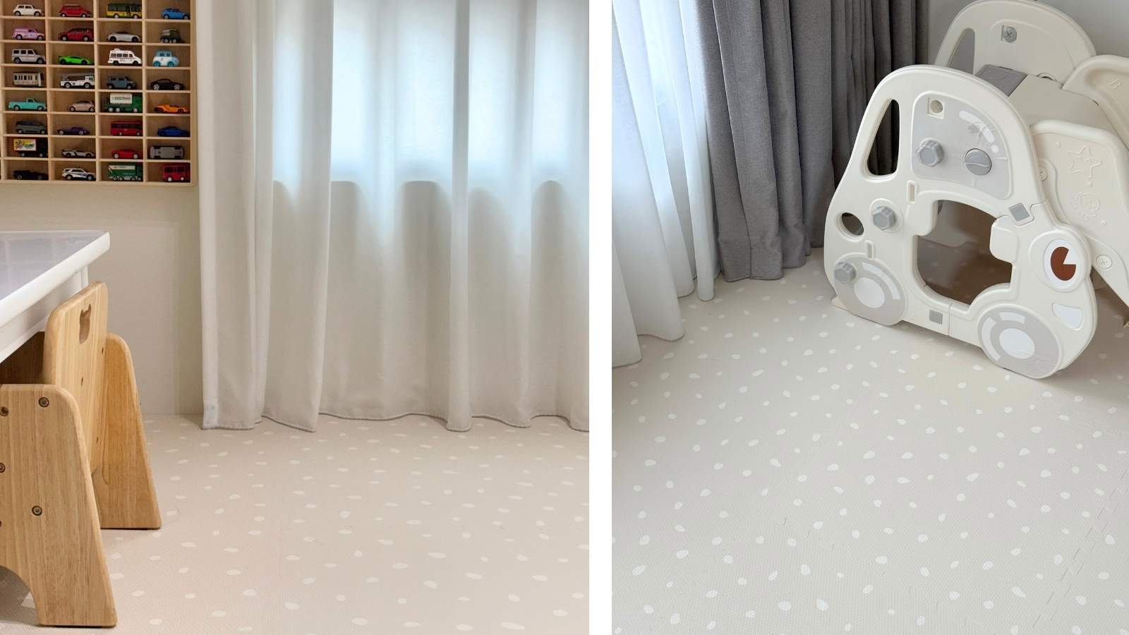 像是鋪設具備緩衝效果的地面材質,例如巧拼地墊,