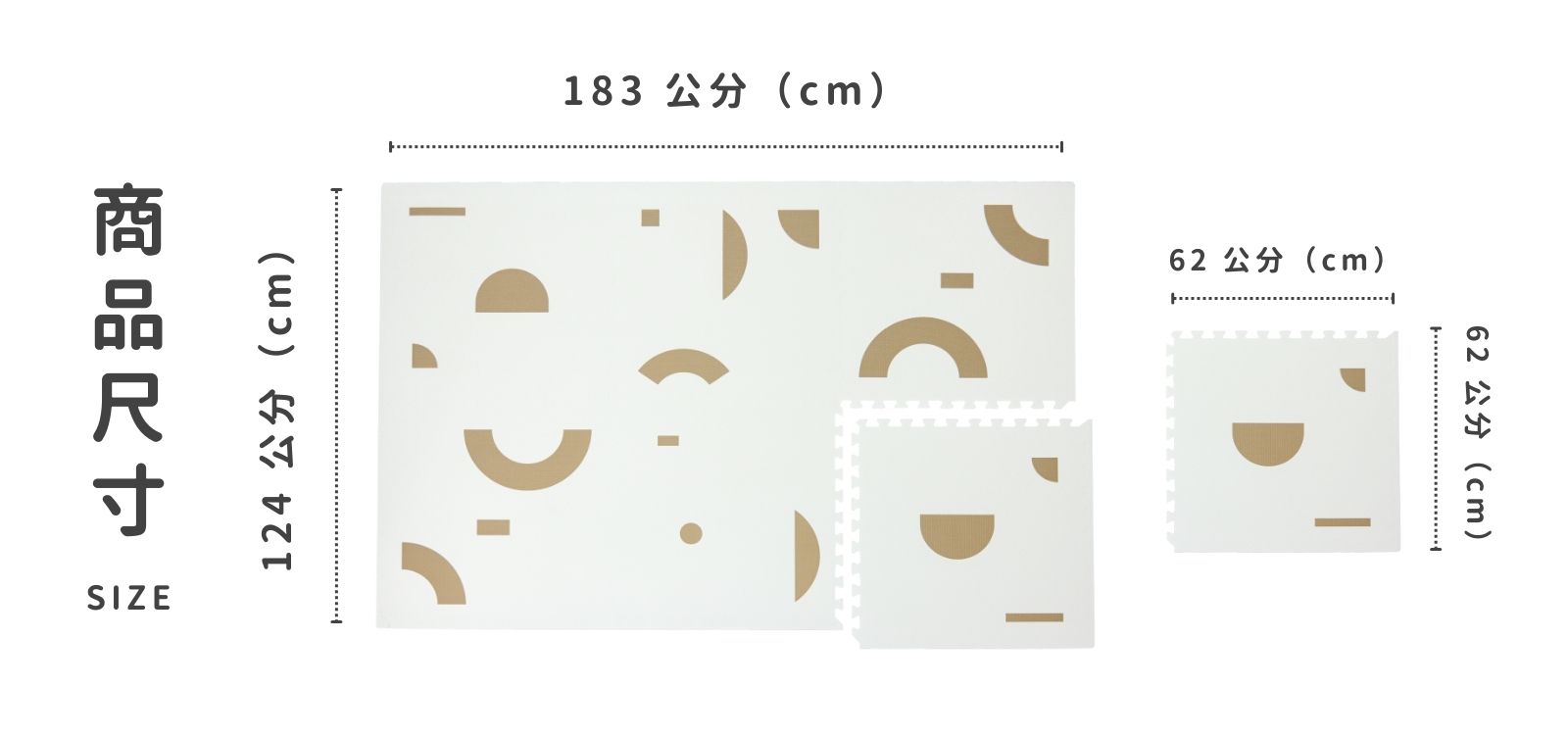 • 組合尺寸:124 × 183 公分(含邊條)