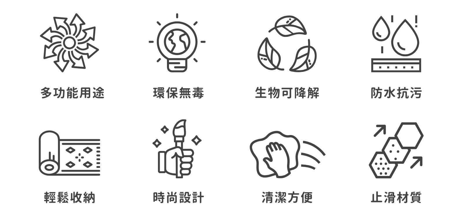 ⩩ 簡約設計 ⩩ 一片式地墊 ⩩ 環保材質