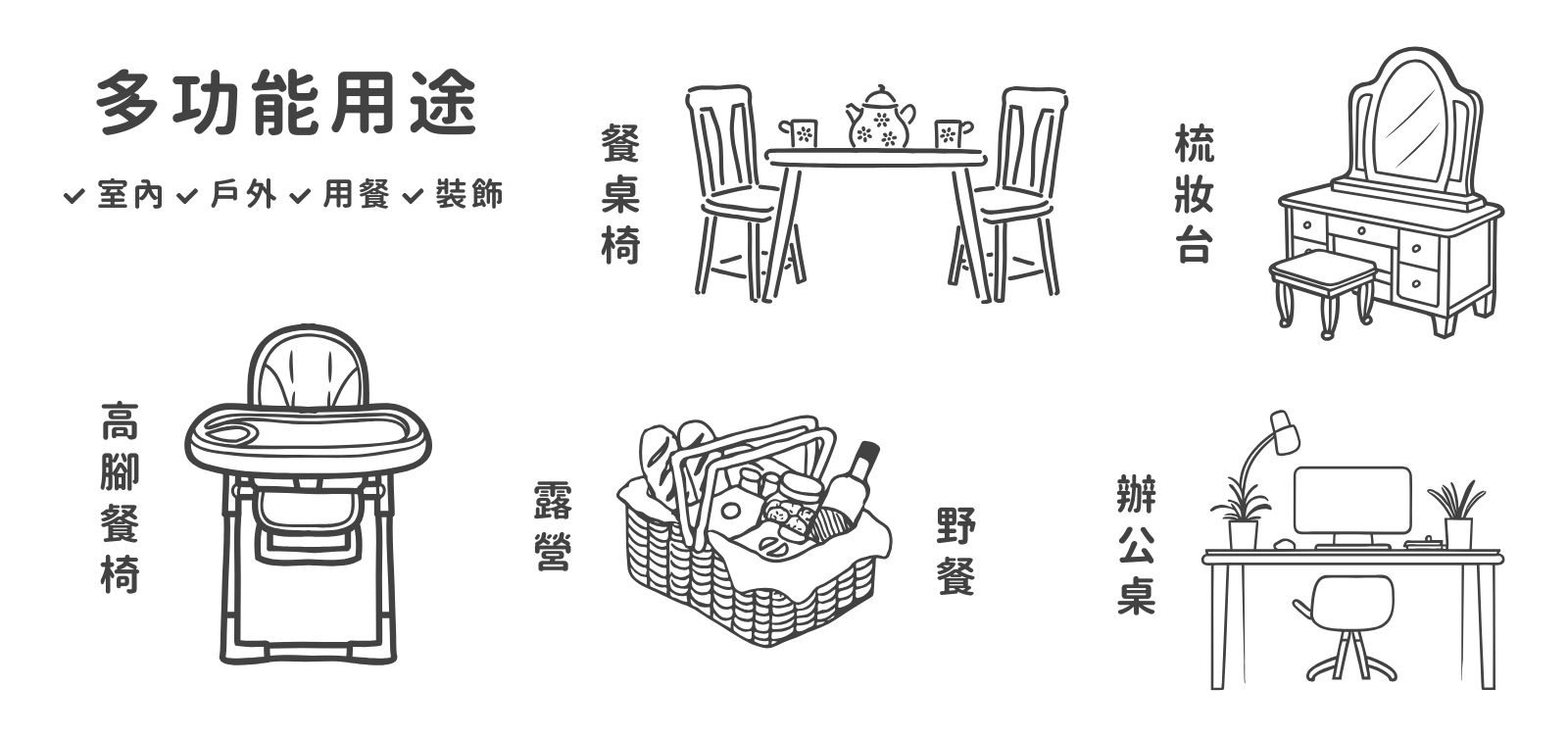 ⩩ 防水抗汙 ⩩ 無毒染料 ⩩ 多功能用途