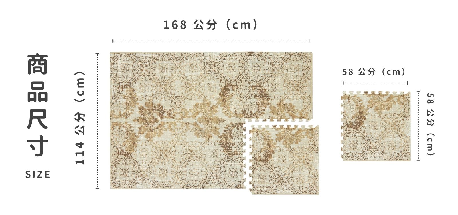 • 單片尺寸:58 × 58 公分(cm)