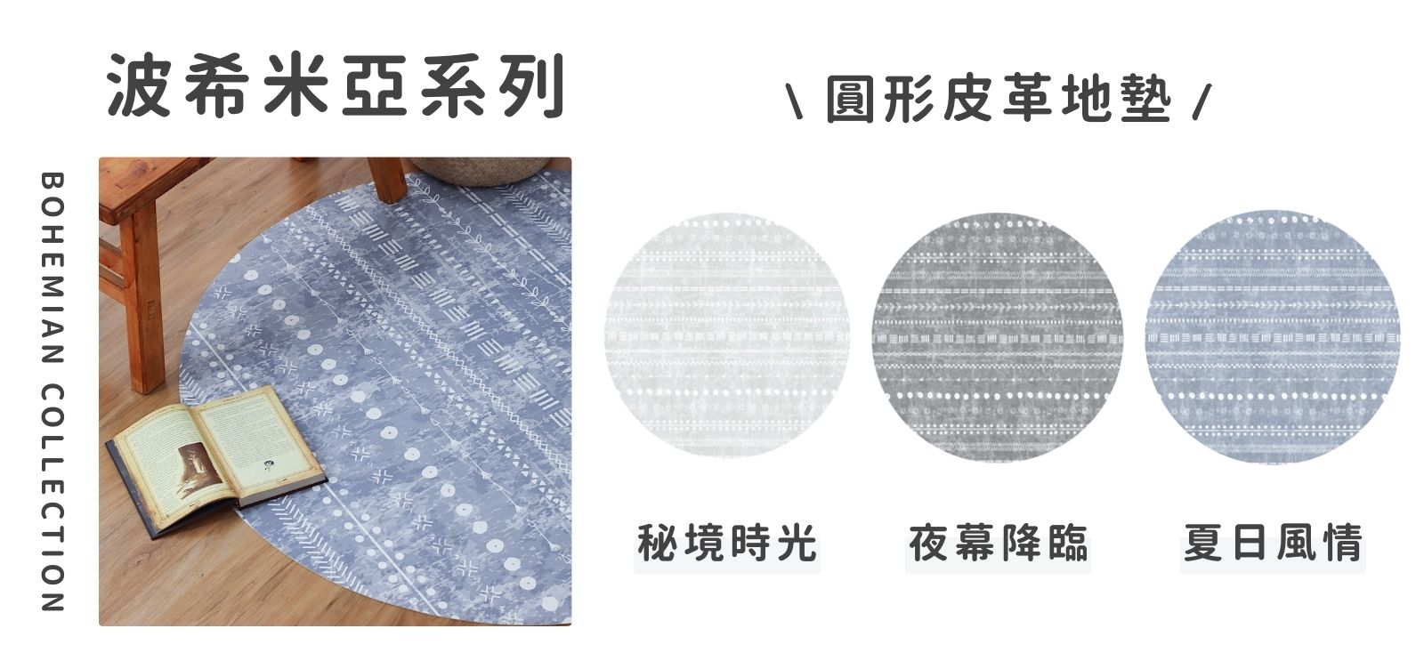 自由奔放美學的「波希米亞系列」皮革地墊,以其獨特的民族特色花紋,為空間增添了一絲神秘與優雅;其藝術圖案與溫和色彩,完美融合了現代設計的簡約之美,使空間煥發出獨特個性與活力,讓平凡的地面變得趣味與魅力,為家居生活帶來無限的創意與靈感。