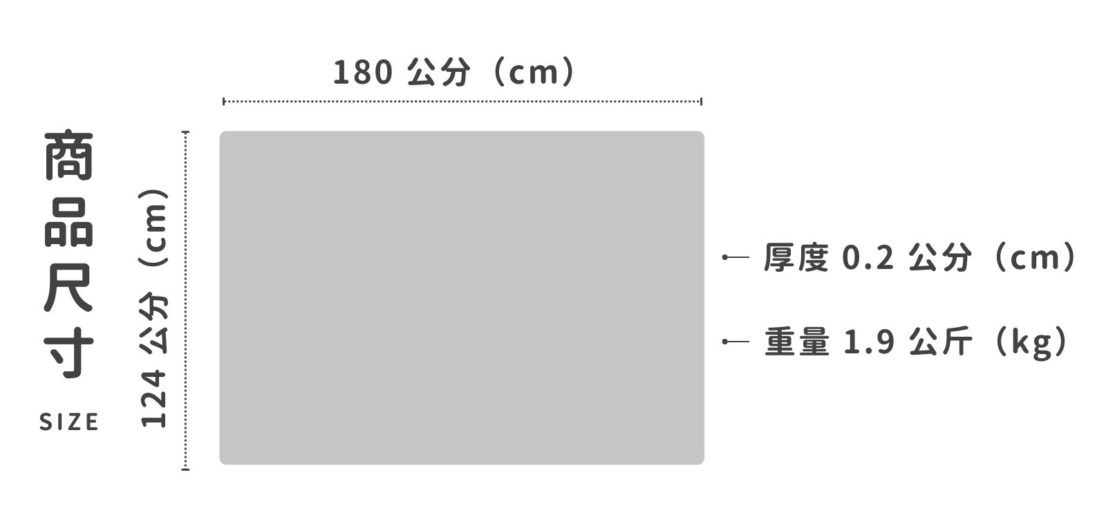 • 尺寸:180 × 124 公分(cm)