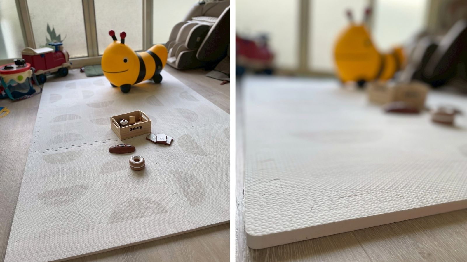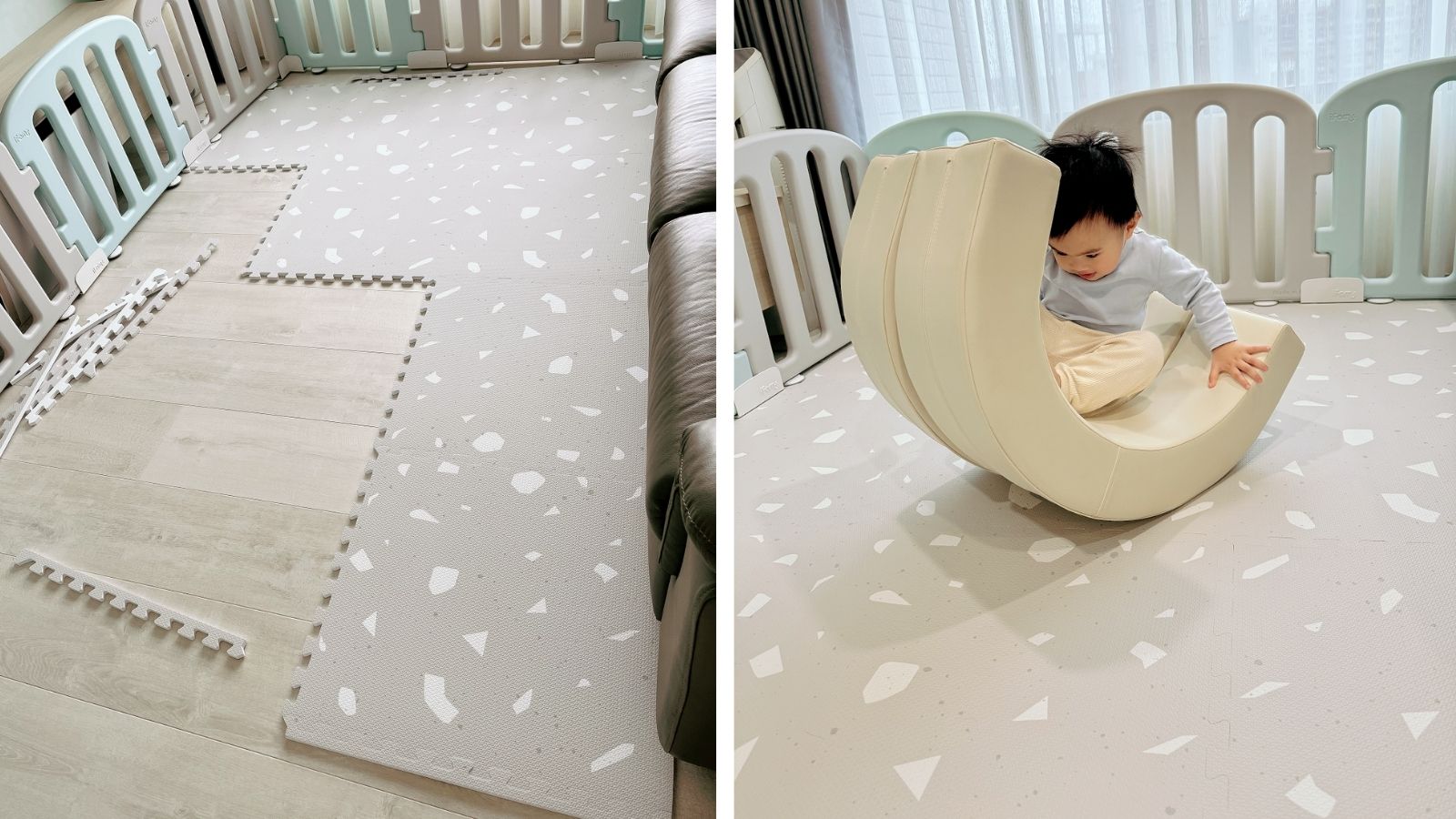 運用地墊劃出「這裡是寶寶區」的邊界感,有助孩子建立安全與自由的活動區域,也能提醒大人注意動線。