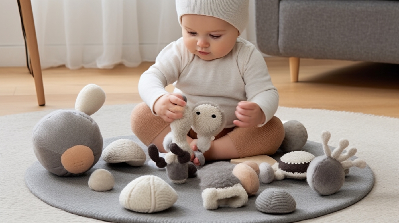 互動性玩具是提升寶寶視覺和感知技能發展的必備好物,爸媽可以選擇一些具有視覺刺激效果的玩具,像是有著各種鮮豔顏色和不同紋理的軟玩具,如絨毛娃娃、彩色布書和軟積木等;這些玩具能夠吸引住寶寶的視線,使他們主動去觸摸與摸索,進而更清楚地了解物品的外觀和質地,而有些互動玩具可能會發出音樂和燈光效果,以此來提高寶寶的專注力和感知技能,同時也為他們帶來樂趣。