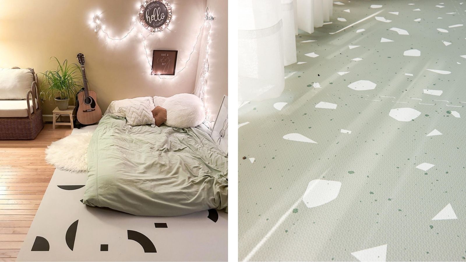 ⟡ 巧拼地墊可作為自然的空間邊界,視覺上劃出每個區域,讓大腦能在切換時自動進入對應狀態。