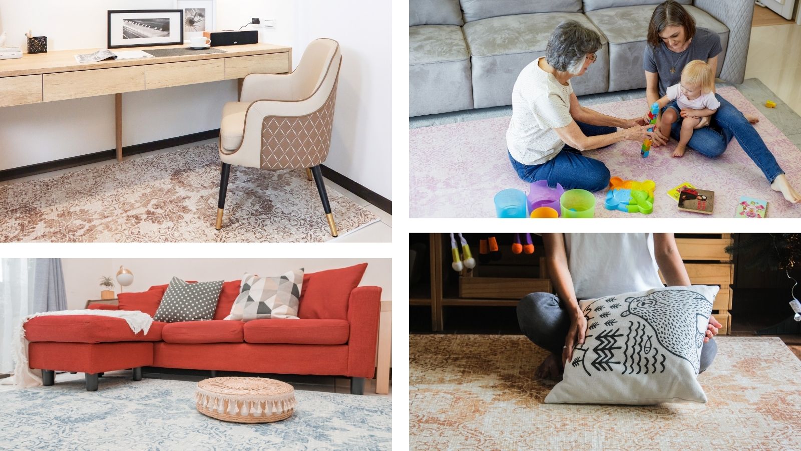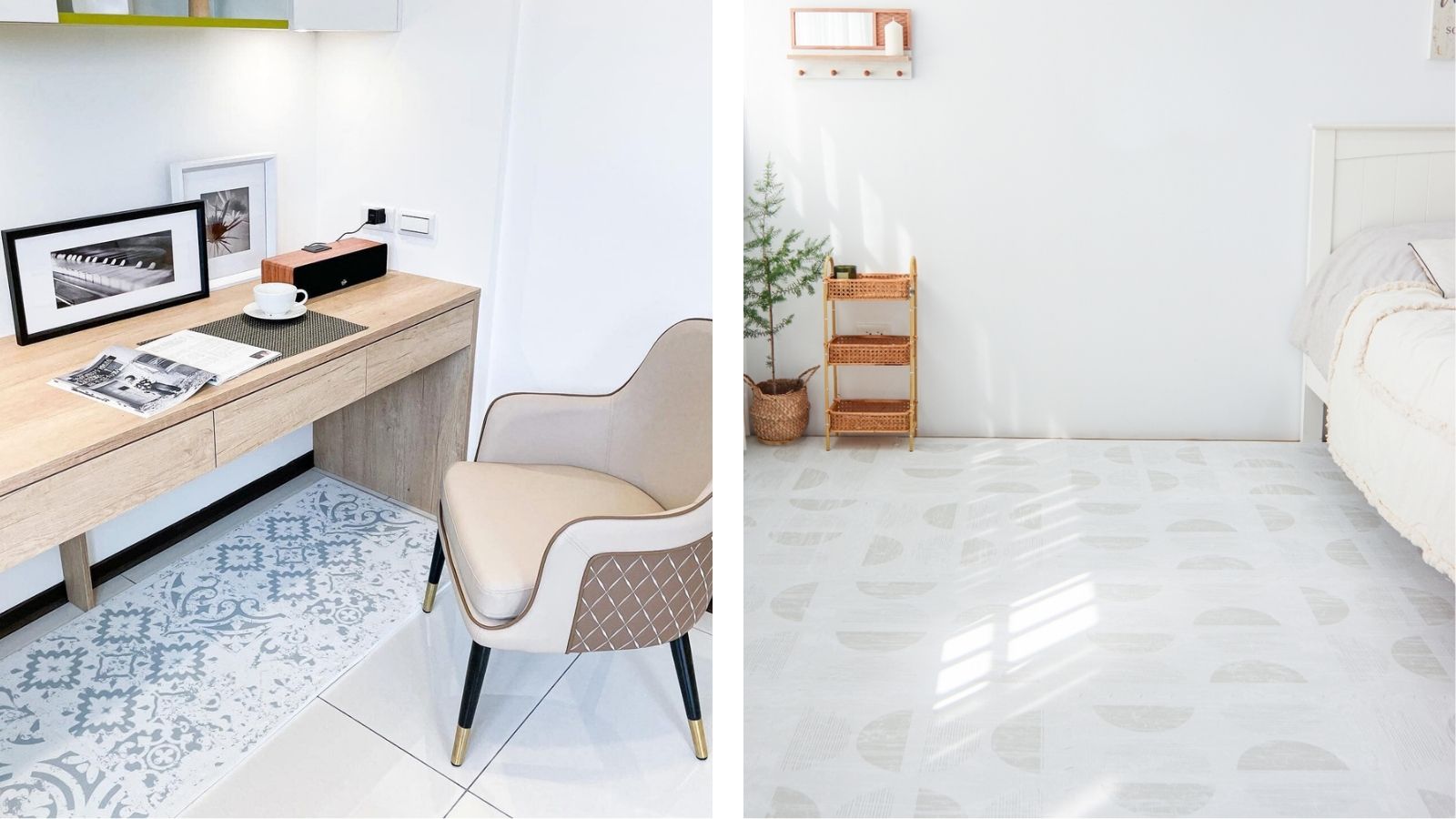 ⟡ TIPS:選擇地墊色調時,盡量保持與房間主色一致;米色、白色、灰色等中性色不僅百搭,也能讓空間更顯寬敞清爽。